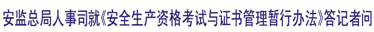 以更严格的考试考核 强力推动提高安全培训质量 安全监管总局人事司就《安全生产资格考试 与证书管理暂行办法》答记者问 2013年9月24日,安全监管总局(以下简称总局)印发了《安