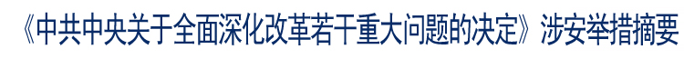 践行安全发展 全面深化改革 《中共中央关于全面深化改革若干重大问题的决定》涉安举措摘要 党的十八届三中全会通过的《 中共中央关于全面深化改革若干重大问题的决定 》近日全