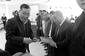 中国石化联合会副会长兼秘书长赵俊贵为获奖企业颁奖。(辛晋凯 摄)