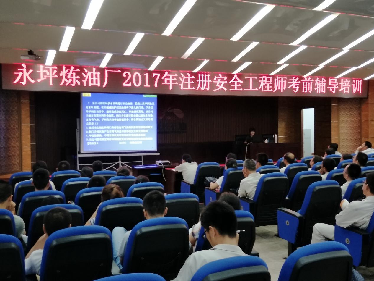 应协会会员单位----陕西延长(石油)集团有限公司永坪炼油厂的邀请,8月21日至22日,协会组织辅导教师就《安全生产法及相关法律知识》、《安全生产管理知识》、《安全生产技术》和《安全生产事故案例分析》进行了“注安”考前培训。