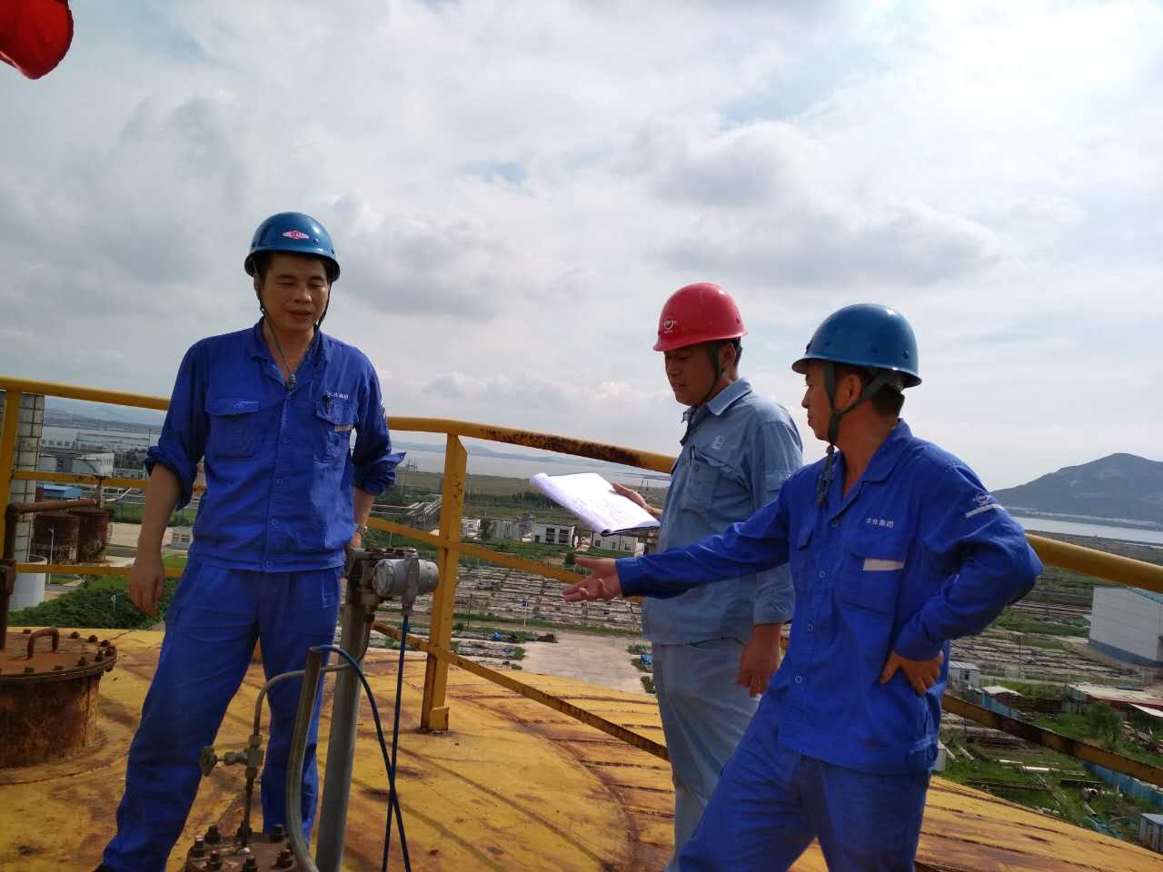 图2 专家询问罐顶安全设施维护情况